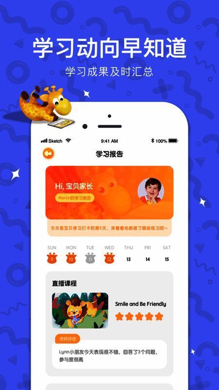 视频课程:外教全程录播课程,与长颈鹿美语 3 - 12 岁学制课程配合,实现线下与线上完美结合,规划学习过程。