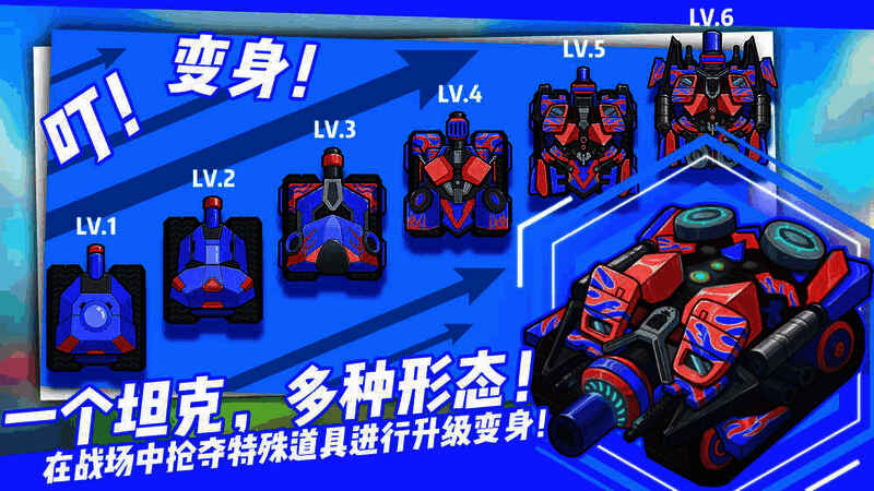 - 一个坦克多种形态,战场获特殊道具可强化变身。