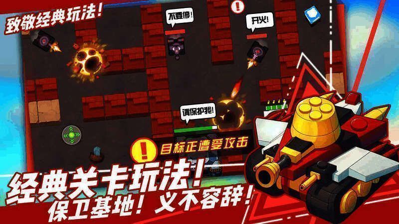 - 复刻经典,玩法道具升级:全面升级FC坦克大战玩法,除经典守护基地玩法,新增护送油罐车玩法和自爆坦克等新式敌人,体验更丰富。