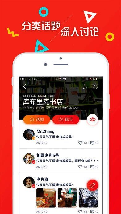 【即时聊天】:与身边的人轻松交流,找到共鸣。