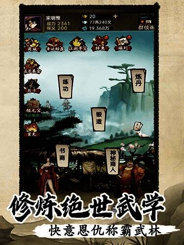 个性侠客养成:没错!你就是主角!游戏提供个性化选择来决定主角属性,是成为贤明豁达的一代大侠,还是阴狠决绝的绝世枭雄,全由你掌控。