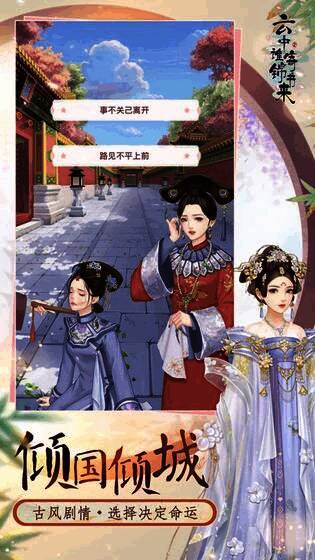 《云中谁寄锦书来》是一款古代剧情模拟恋爱养成游戏,有着倾国倾城的古风剧情,带你体验命运的抉择。其游戏画风古风古韵,连空中飘来的云朵都仿佛带着爱意。在游戏里,你将化身宫女,从懵懂小白一路成长至腹黑角色,别轻信爱情,专注于惊心动魄的宫斗。努力培养自身势力,朝着后宫第一人的目标迈进。
