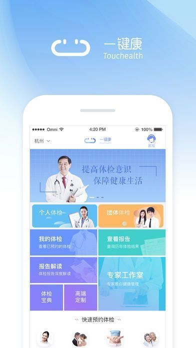 《一键康》是一款超实用的在线体检服务平台。在这里,用户不仅能一键查询体检报告,还能建立专属电子健康档案。它运用移动互联网,为公立医院体检中心做整体宣传与体检人群导流。由医学专家联合开发,精准匹配体检项目与套餐。