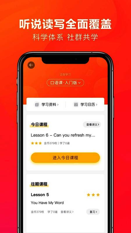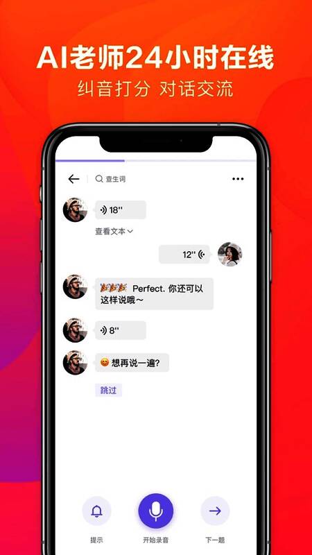 口语跟读:逐句跟进,智能打分,提升口语水平。