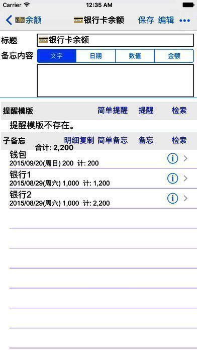 支持关联备忘,让备忘管理更轻松。可以将一个备忘以参照方式添加为其他备忘的子备忘,轻松重新组织备忘。此外,还有记账功能,能对数字备忘进行合计。