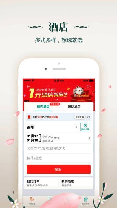 3、酒店:可预订国内及港澳4万余家酒店,有海量酒店房型照片和真实住客的点评。入住后发表点评可赢奖金,手机预订返还更多。