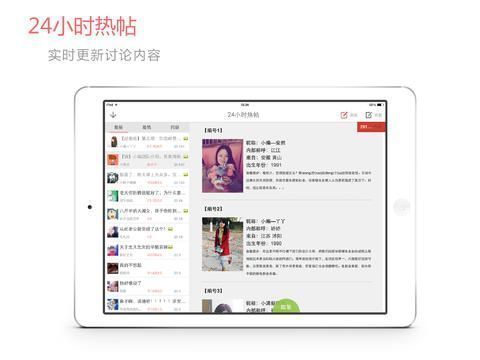 1. 妈妈圈:热门话题圈子,涵盖育儿、时尚、扮靓、瘦身、情感、婆媳、打击小三、劲爆自传连载、两性健康等内容,让你看得欲罢不能。