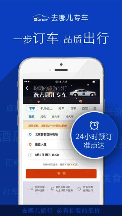 借助移动客户端的全平台覆盖,去哪儿旅行提供吃住行游购娱一站式解决方案,随时随地为旅行者提供国内外机票、酒店、度假、租车、接送机、火车票和团购等旅行信息的深度搜索与预订服务。其超过80%的低价占比以及全面丰富的旅行产品,能助力旅行者找到高性价比的产品和优质信息,聪明地规划旅行。