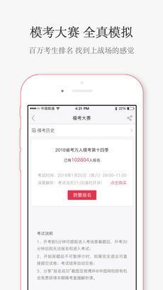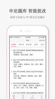 1、做题、背题模式自由切换;2、全面收录历年真题,解析考点详尽;3、提供申论人工批改服务;4、名师互动,随堂练习,科学备考;5、万人模考大赛,分省进行。