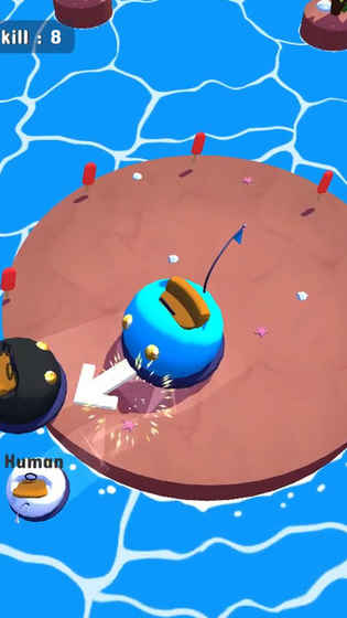 1、极易上瘾,用手指操控球的移动方向。2、用保险杠击倒对手使其出局。3、吃冰淇淋可让球变得更大更强,获得更多体力。4、成为地图上最后一个存活者才能获胜,成为最终强者。
