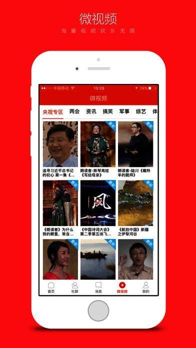 1、CCTV微视是央视精心打造的一款跨终端移动应用,主要具备社交电视、资讯、UGC等功能,为公众提供节目推荐和社交互动服务。