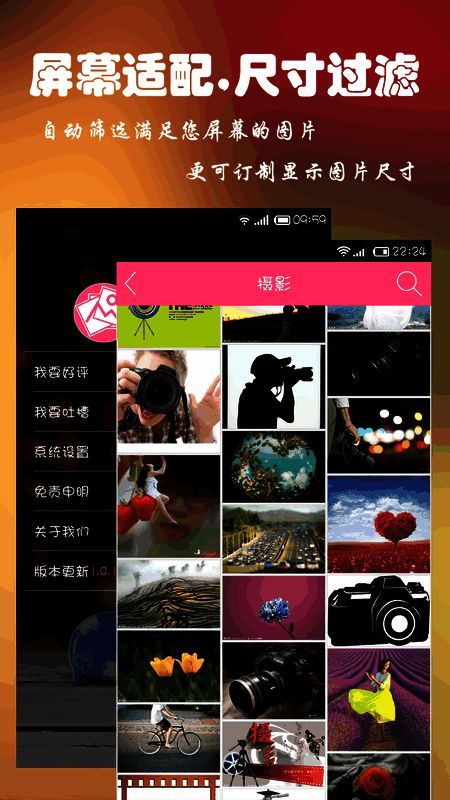 1、提供海量高清图片壁纸下载,能自动匹配小米、联想、三星、华为等各类手机屏幕,轻松找到适配屏幕的图片。
