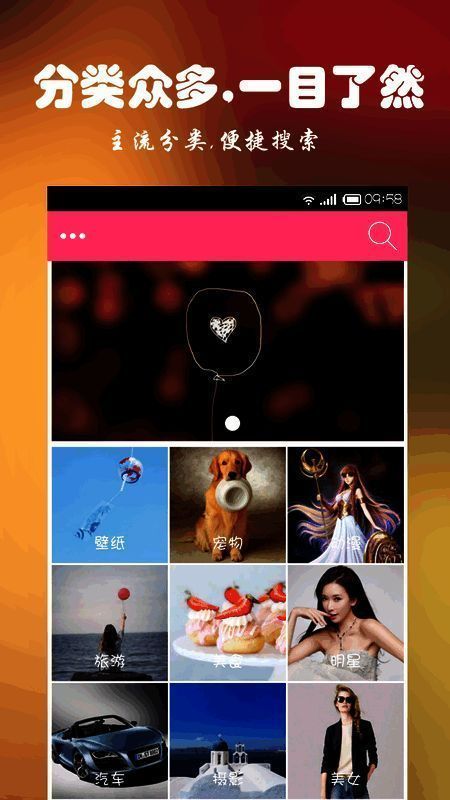 2、有亿万高清图片供你选择,包括美女、风景、网游、娱乐等多种分类,不比安卓壁纸、爱壁纸等软件差;可一键下载替换桌面壁纸,轻松换肤。