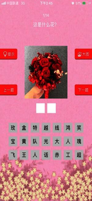 《不思议猜图》是一款考验玩家脑力与眼力的益智挑战休闲游戏。每一幅图案都独一无二,玩家需猜出不同主题,凭借自己的理解找出正确答案才能进入下一关。比如图中出现鲜花,就得根据花的颜色和样子猜出品种。