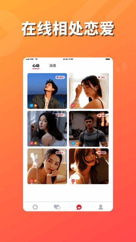 结识同城陌生人,找到让你心动的TA,直接语音、视频交流,查看对方动态,与男神女神约会,摆脱单身开启恋爱之旅,和真实颜值男女一起,体验从未有过的有趣聊天,告别孤单寂寞,感受亲密陪伴!
