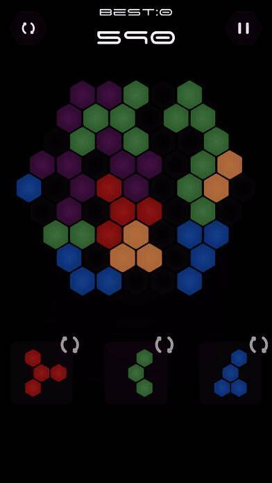 这是以六边形为主题的益智消除类游戏,采用放置玩法。玩家需把给出的图形放到空白区域,只要任意方向的六边形填满就能消除,颇具挑战性。