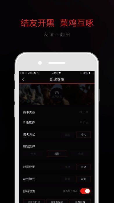 《电竞圈》是一款能同时满足电竞职业选手和普通爱好者举办与参加电竞比赛需求的应用。它提供了单淘、双败、小组循环赛等多样赛事类型,涵盖炉石传说、守望先锋、DOTA2、英雄联盟等热门电竞游戏。还具备赛事搜索、赛事信息推送、裁判仲裁审核等专业服务,已成功承办多场线上线下大型比赛,获合作伙伴广泛好评。