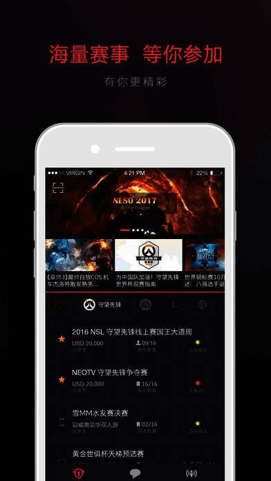 1、汇聚海量热门电竞赛事资讯,实时报道。