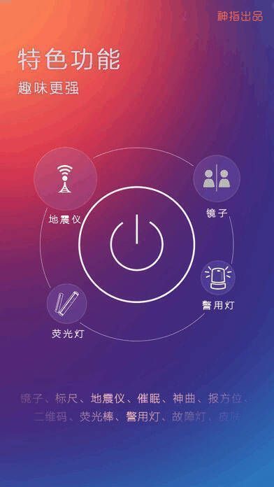 具备地震警报、安全防狼、报方位、显示海拔高度经纬度、炫彩灯、指南针、标尺、安神催眠、镜子等功能;启动速度快,设计精美,是首款按照IOS7风格设计的手电筒应用。