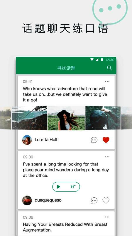 4. 【发表、关注动态】拓展社交网络,用英语分享生活趣事,享受交流乐趣。