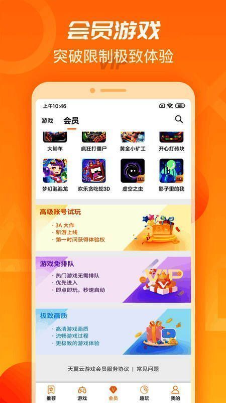 天翼云游戏 app 是电信 5G 推出的游戏平台软件,为用户提供最新、最好玩的手游内容。用户不仅能获取免费的新游测试服务、第一手手游资讯资源,还能领取游戏礼包,轻松度过新手期。这是一个精心为玩家打造的云游戏平台,支持全网络接入,提供高清内容和多终端沉浸式体验。玩家利用 5G 等高速网络,即点即玩,无需下载安装,就能随时随地畅享各类手机、主机优质游戏。