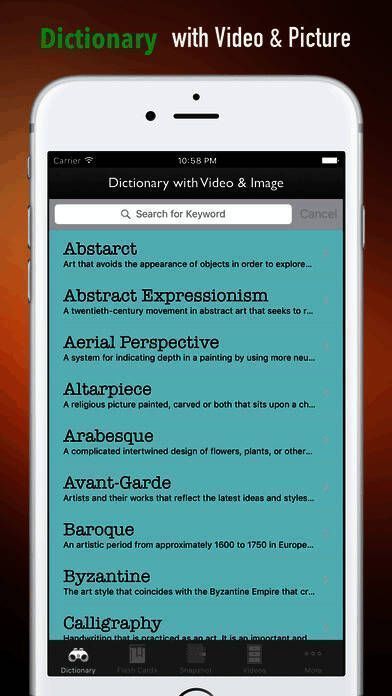1、收集了所有常用的艺术史专业用语,无论何时何地对该领域用语有疑问,此应用程序都是强大的辞典工具。