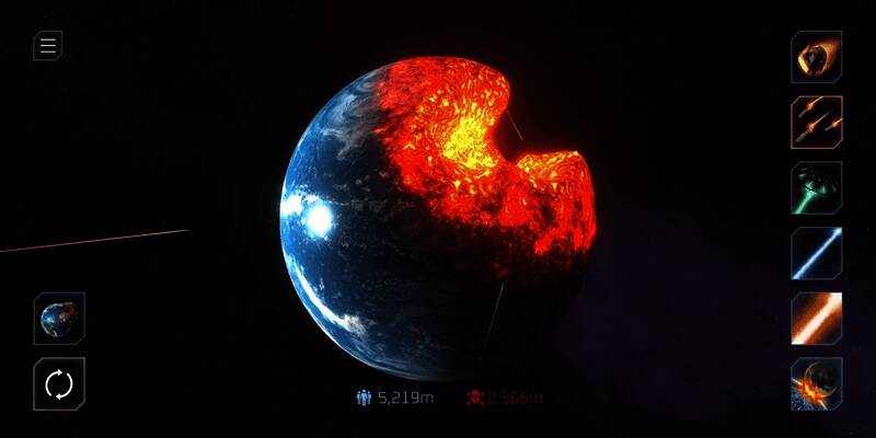 《行星毁灭模拟器》是一款科幻风休闲减压模拟手游。在游戏里,玩家能自由摧毁地球,使用不同武器破坏星球,破坏程度越大得分越高,过程十分减压,越玩越痛快。