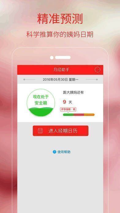 1、【精准预测】运用科学专业的经期算法,自动精准推算大姨妈日期、经期和排卵期。