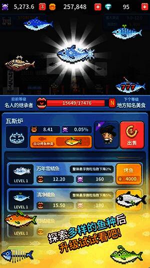 探索多样鱼种并尝试升级。