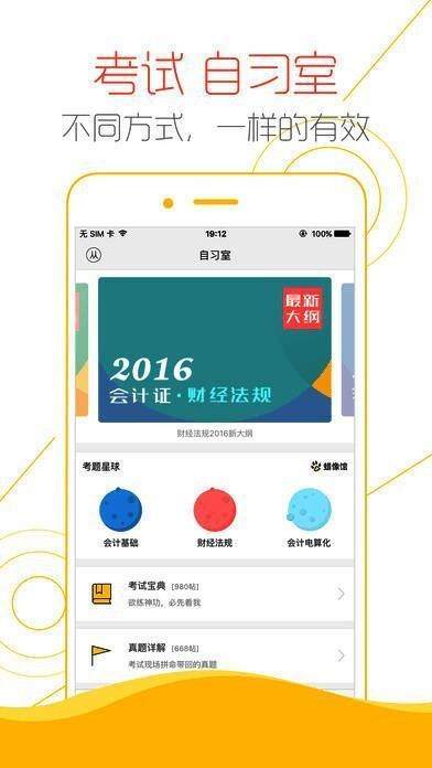 2、专业、权威的练习中心:章节练习、知识点练习、网校模拟题、历年真题等都能通过手机实战演练,题型全面、精准,贴近考试,能大幅提升应试能力,涵盖会计从业、会计职称、注册会计师考试。