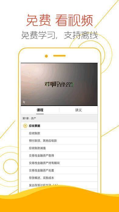 1、百位会计名师同时开讲:设有预习班、基础班、习题班、精讲班、串讲班等完美班次,满足会计从业、注会、会计职称等学习各阶段需求,可同时观看讲义、调节语速、做笔记、进行音/视频切换,还能下载到本地。
