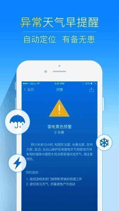 4. 推送恶劣天气预报,提前防范异常和灾害天气,做到有备无患。