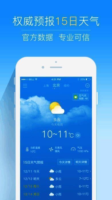 1. 独家提供7天、10天、15天天气预报,数据源于官方权威机构,打造国内最精准的天气预报。