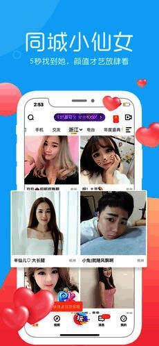 1、同城的小仙女主播全天24小时直播,涵盖好声音、热舞、搞笑、VR等各类达人。