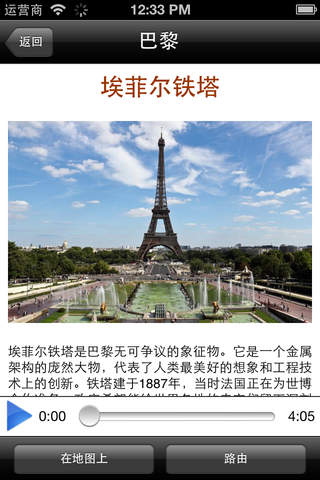 每个有声指南宛如职业导游,介绍城中名胜,展示图片,还能在离线地图上标注位置。您能通过软件分享旅途照片,下载所需城市指南后无需联网,节省国外网络漫游费。