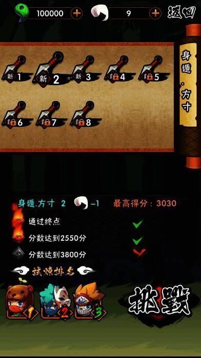 1、可选择多种忍者形象进行游戏,挑选心仪忍者出战;2、若对自身反应能力有信心,可在危机来临时瞬间躲避,感受忍者在刀尖上跳舞的快感;3、独创天眼模式能提前洞察战场,让你从容应对各种困难训练。