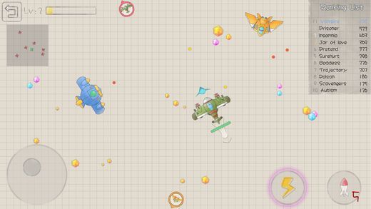 游戏开场,你会和其他飞机一同出现在有限空间内。快速操控飞机,收集盾牌、导弹、生命等道具,让自己变得更强。同时要躲避攻击者,射杀敌机以获取大量分数和金币。游戏操作简单,却充满趣味性与竞技性。