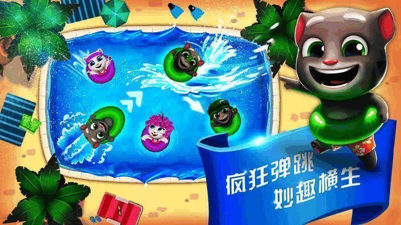以全新方式和汤姆猫聚会,享受游泳圈带来的轻松惬意。