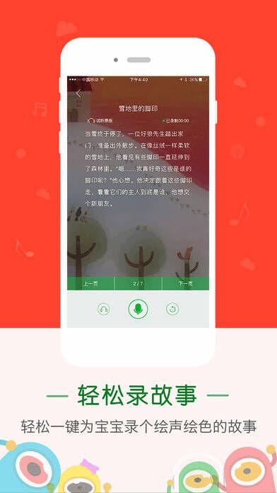 2、便捷录制:一键轻松为宝宝录制绘声绘色的故事。