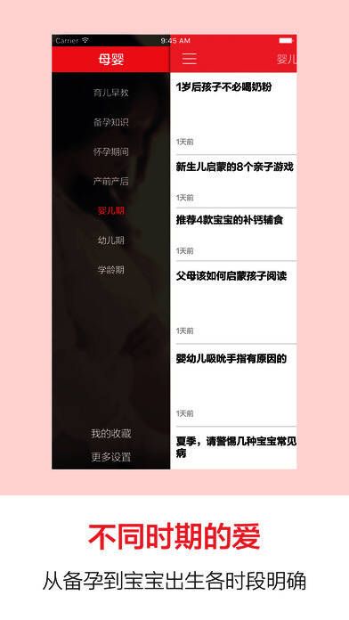 2、【产前产后】针对怀孕期间及产后月子阶段,提供饮食、情绪、健康等全方位实用内容,助力妈妈生下健康宝宝;