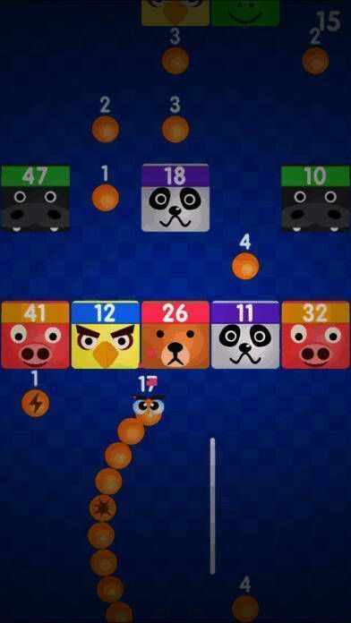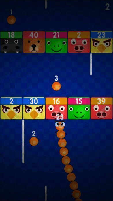 1. 滑动手指操控球组成的蛇,击碎怪物砖块。