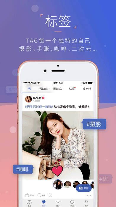 丰富热门标签任你挑选,精准展现“我是谁”和“我喜欢”;迅速结识志同道合之人!