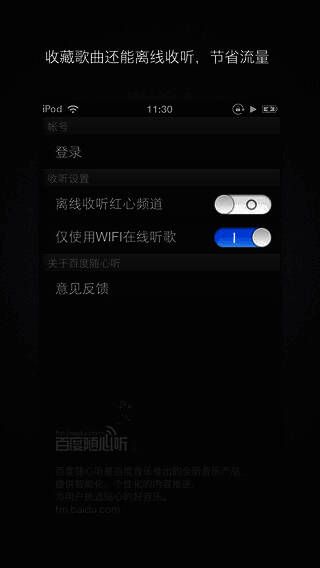 3、可离线收听红心频道,最大程度节省流量;