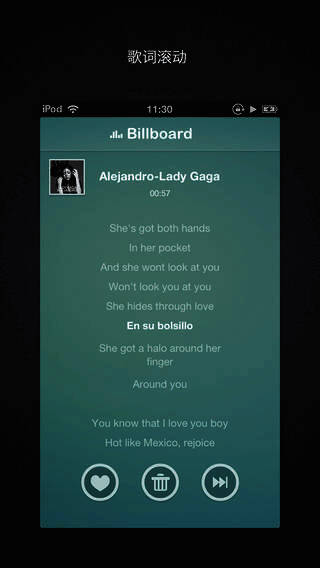 4、歌词能同步滚动。