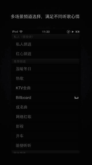 2、拥有丰富的电台频道,能满足不同的听歌心境;