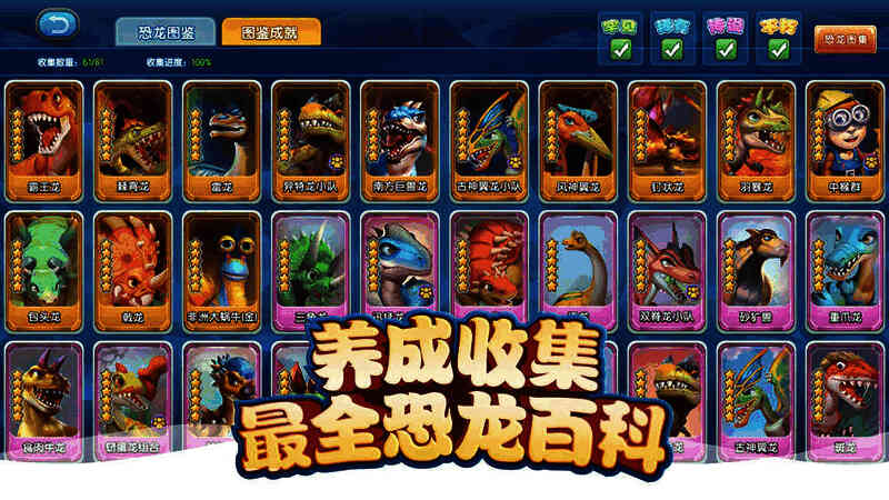 2、玩家可自由挑选恐龙卡牌,合理搭配阵容,组建专属恐龙战队。在挑战玩法中自由匹配对手进行挑战,参与挑战就能获得星级奖励,还能在排行榜上展示个人排名。