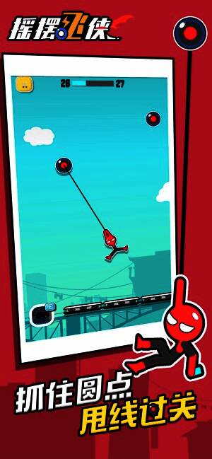 2、操作简单,只需抓住圆点甩线摇摆就能前进。