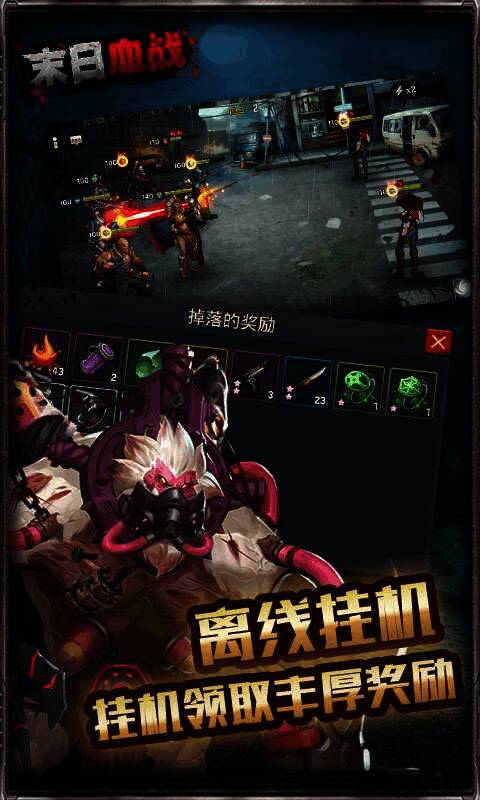 《末日血战》是末日题材的生存休闲挂机类RPG手游,画质高清,故事背景宏大,呈现真实末世场景,战斗无需操作可自动挂机。你能在战役里自由冒险,于酒吧招募英雄,攀登末世之塔,在竞技场夺取荣誉,在魔窟探险收获惊喜,在勇者之路挑战极限。游戏还有多样有趣的副本,提供丰富装备、武器,有不同阵营和职业的英雄,可组建小队,登顶竞技巅峰,称霸末世!