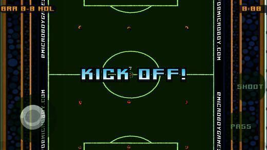 《微型足球》由MicroBoy出品,是有趣又具挑战的复古风足球游戏。它操作简洁,可通过屏幕虚拟摇杆移动,划动屏幕完成传球、射门和晃人动作,也能使用传统屏幕按键操作。