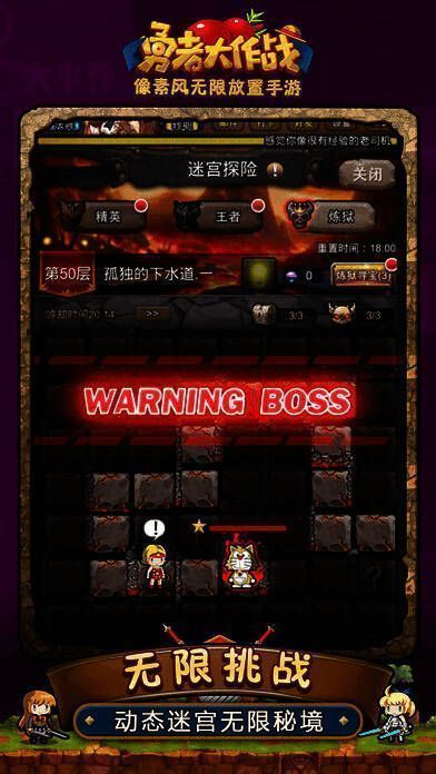 《勇者大作战苹果版》是一款独具特色的像素风放置类手游。它拥有沙盘式动态迷宫,每一层都充满未知惊喜。采用放置挂机玩法,即便离线也能持续收获收益,还融入流行的弹幕体验,让玩家尽情享受吐槽乐趣。